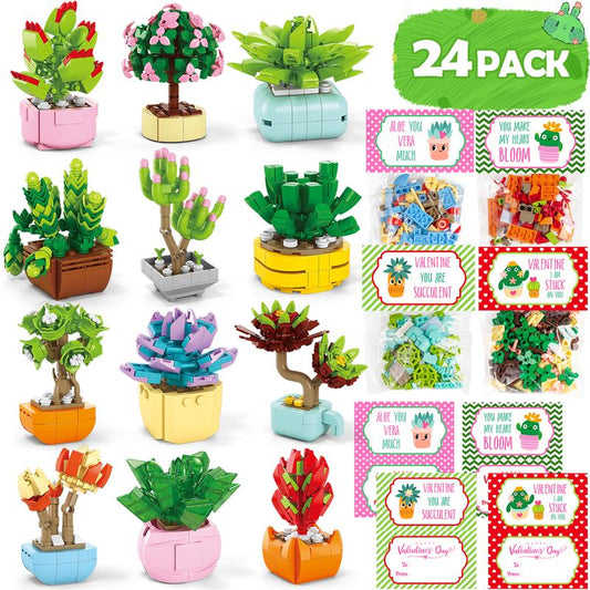 24 Pack Valentine’S Day Mini Gift Sets with Greeting Cards Succulent, Ocean Animal & Flower Desk Decorations Small Holiday Gifts for Classroom Exchange & Party Favors
