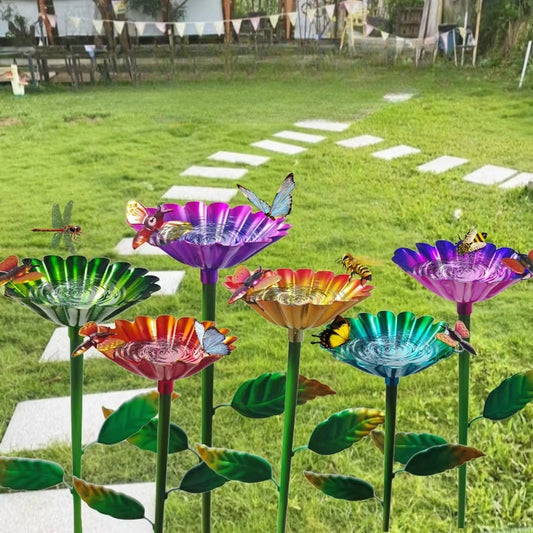 1Pcs Iron Rustproof Outdoor Ground Stake with Teacup Bee Design Durable Waterproof Metal Art for Garden/Lawn Decor